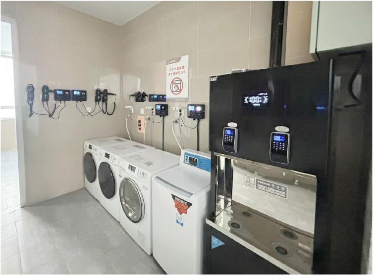 生活区更是让学子们直呼“想搬进来不走了”。四人间宿舍宽敞明亮,空调、独立卫浴、上床下桌一应俱全。每层还贴心配备了公共洗漱房,吹风机、洗衣机、洗鞋机、净饮水机整齐排列,生活琐事不再耗时费力,好状态从清晨开始。