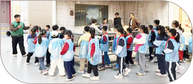 紧接着,小记者们走进日照革命历史纪念馆,开启了一段红色历史探寻之旅。这座布展面积达6000余平方米的纪念馆,以“救亡图存”“日照暴动”“抗日战争”“解放战争”“铭记历史”五大板块,完整再现了日照地区的革命奋斗历程。在老师的细致引导下,小记者们驻足凝视,认真观看每一件饱经岁月洗礼的革命文物、每一幅定格历史瞬间的珍贵照片,仔细聆听每一段波澜壮阔的革命往事。从革命先驱王尽美传播革命火种、奔走救国救民,到安哲领导日照暴动、掀起革命浪潮,再到日照人民踊跃参军参战、倾力出伕支前,一幕幕感人场景、一个个英雄身影,让先辈们不畏牺牲、前仆后继、坚韧不拔的革命精神,深深震撼着每一位小记者的心灵。