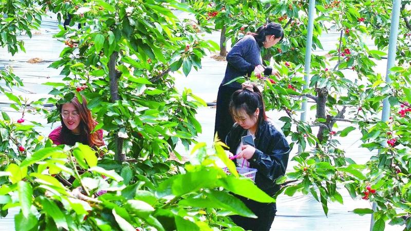 连日来,五莲县户部乡樱为缘高效大樱桃栽培示范基地,大樱桃进入采摘季。