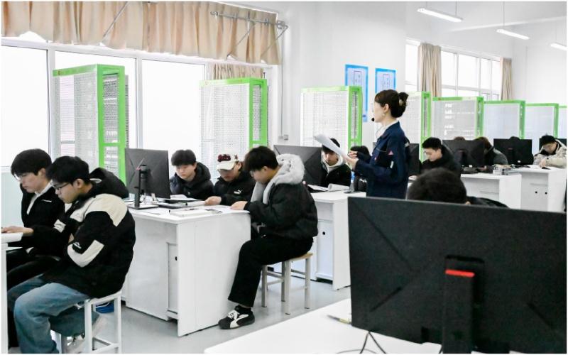 走进校园,崭新的图书馆首先映入眼帘。这座“颜值担当”不再只是藏书楼,而是集图书借阅、自主研学、技能训练于一体的一站式学习空间。办学综合体里,理论教室与实训车间相邻,“教做合一”从理念变为日常。