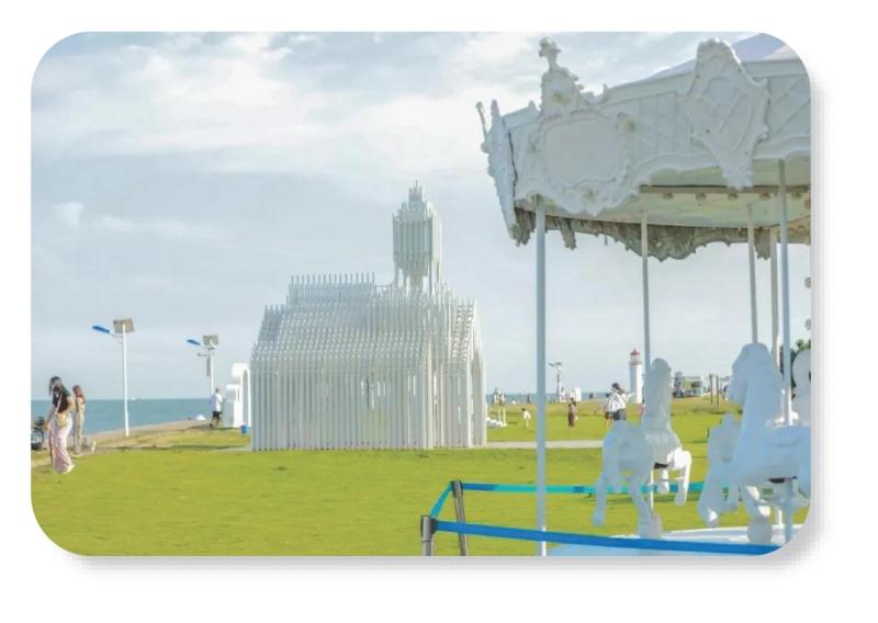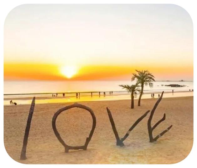 阳光海岸景区,承包了影片里所有的浪漫与治愈。这里的日出,是光影中最耀眼的温柔,金光漫洒海面,将碧海蓝天染成暖橙;纯白教堂、LOVE树杈、海边秋千,勾勒出浪漫的滨海轮廓。晨起追一场海上日出,暮时伴海风漫步海岸,随手一拍,便是电影同款的浪漫剧照,让银幕中的温柔,成为触手可及的美好。
