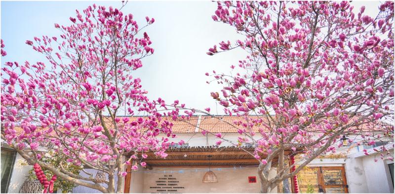 这两棵紫玉兰,是这个小院的“魂”。民宿主理人成兵告诉记者,这原是老渔村村民种下的,有二十多个年头了。改造民宿时,很多人劝他砍了扩建,他却坚决保留了下来。